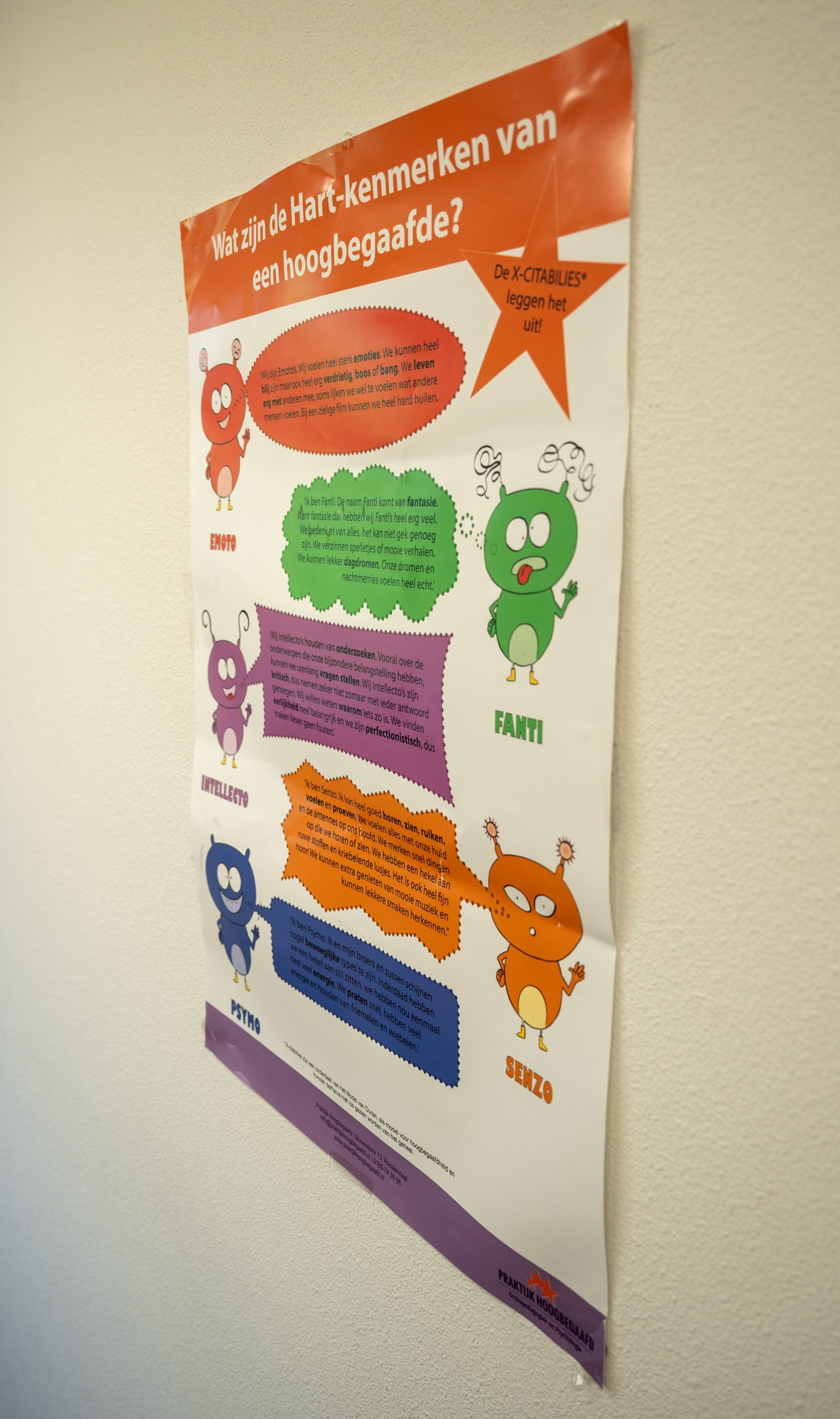 De X-Citablillies vormen binnen Praktijk Hoogbegaafd de basis voor behandelingen bij kinderen. Door hun duidelijke, speelse en herkenbare vorm helpen ze kinderen woorden te geven aan wat er in hen gebeurt. Met deze poster kan de behandeling thuis eenvoudig worden voortgezet: hij ondersteunt gesprekken, biedt houvast en helpt kinderen om dagelijks stil te staan bij hun gevoelens, energie en denkprocessen.